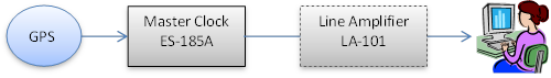 Data timing (UTC) will be accepted by the Master Clock ES-185A. From the Master Clock, the subsequent data is sent to the ELSA Slave Clock/RTC PC Sync, and if necessary can be added ELSA Line Amplifier LA-101 to amplify/as a repeater so that the distance data cable can be even longer.
